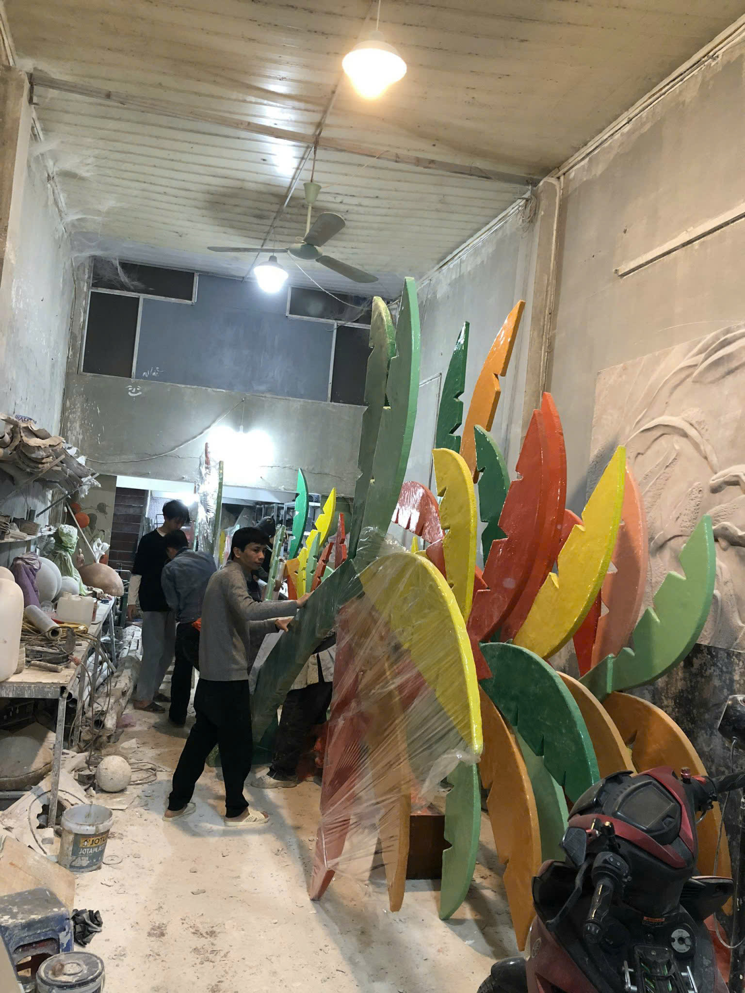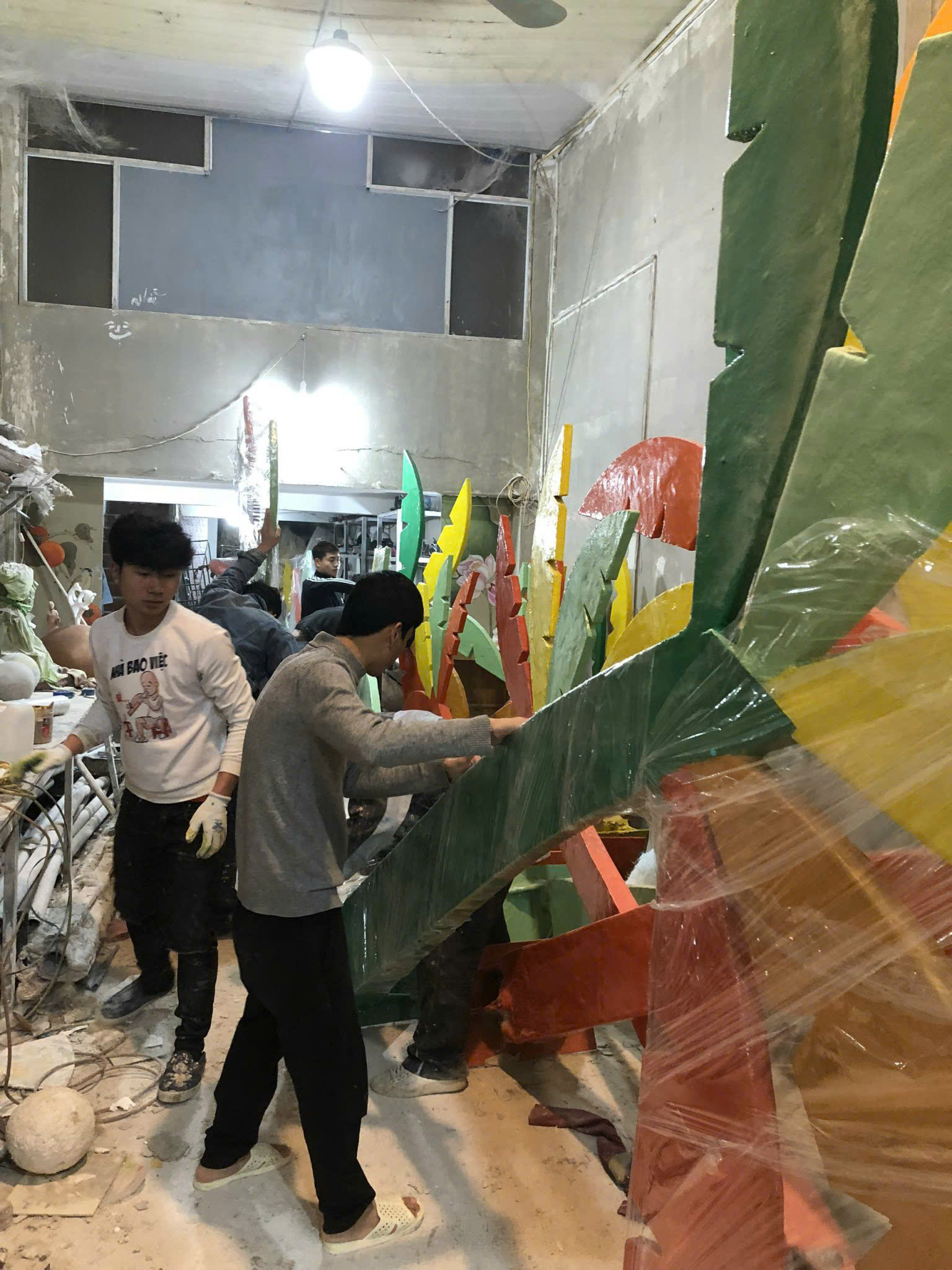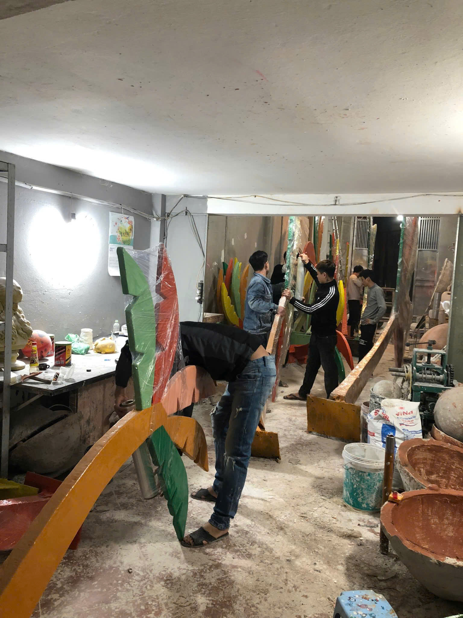 Gia công tại xưởng: Tạo khuôn, đắp FRP theo lớp, gia cố khung sườn kim loại, tiền xử lý chống ăn mòn.