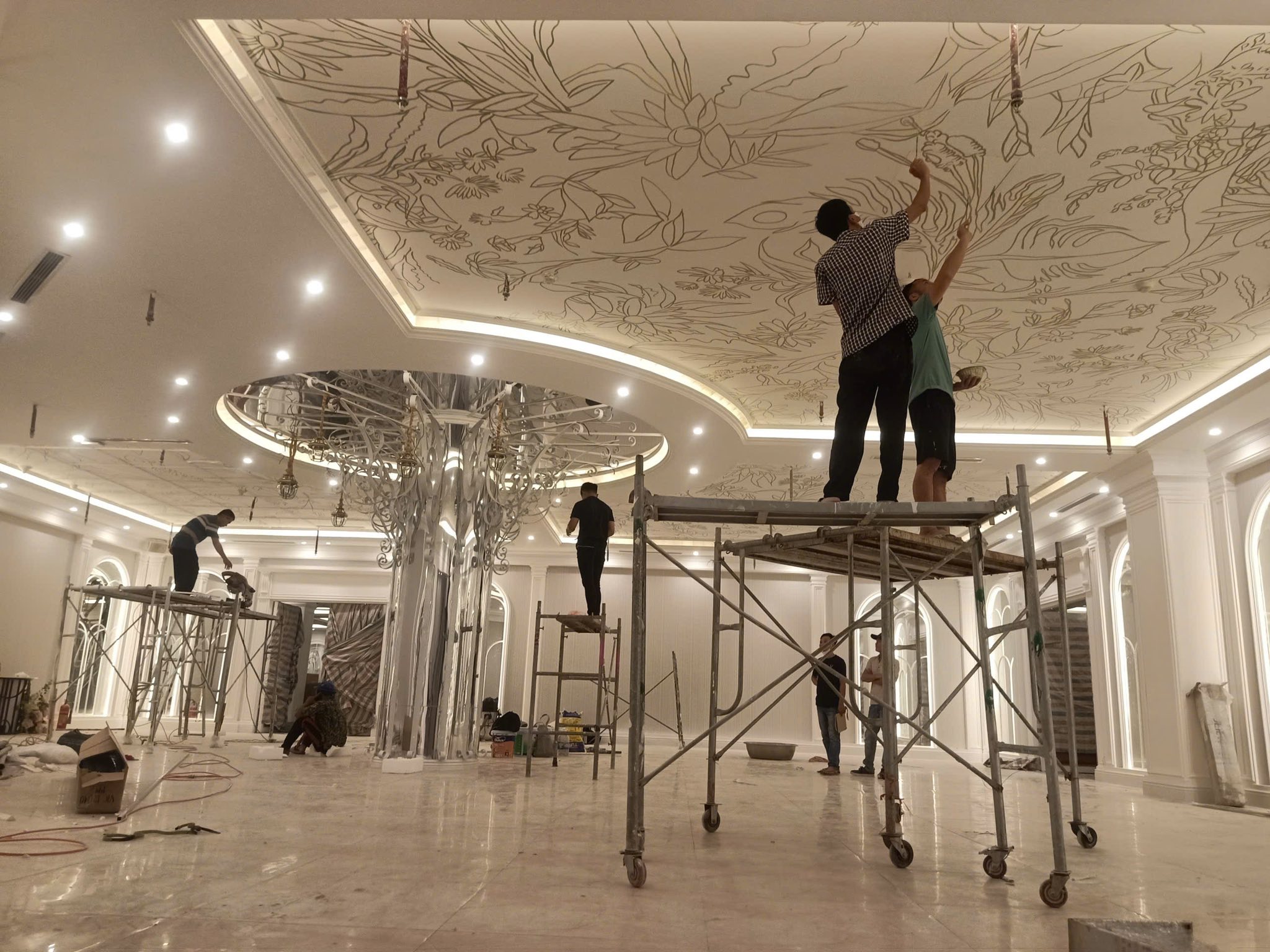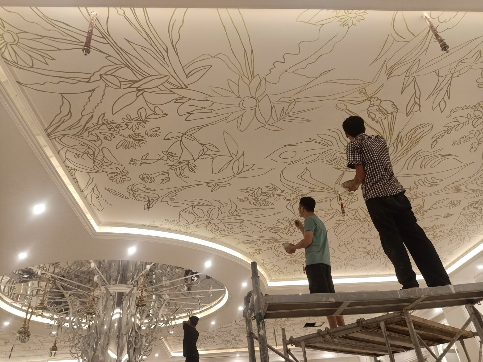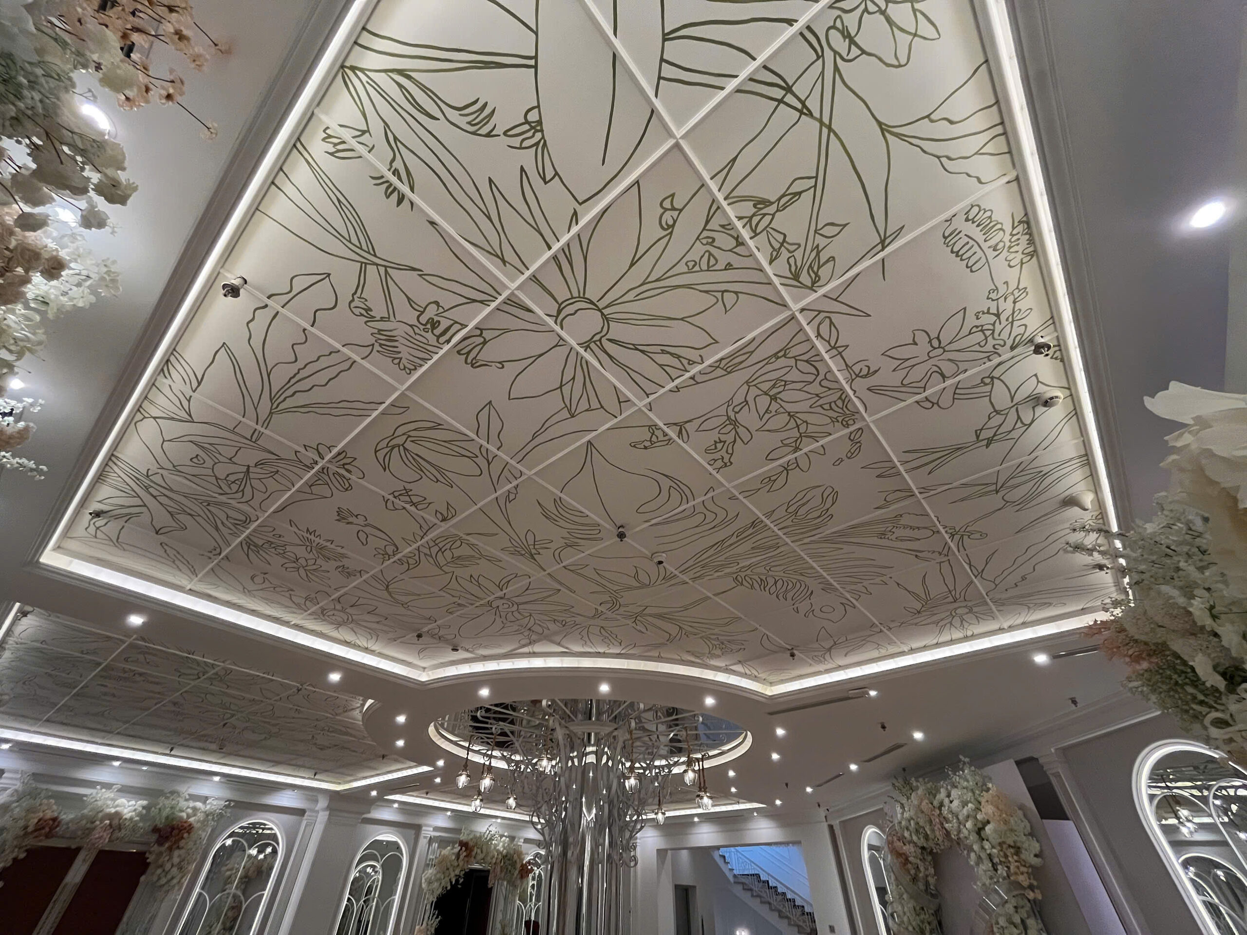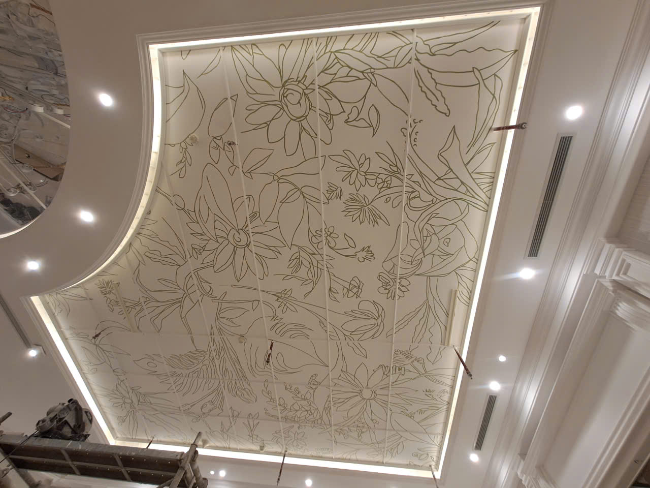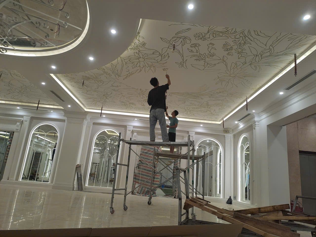 Một trong những dự án tiêu biểu vừa hoàn thành là tranh trần nghệ thuật tại Trống Đồng Place (72 Trần Đăng Ninh), công trình được thiết kế tinh tế, mang hơi thở tự nhiên và nhịp điệu của sự sống.