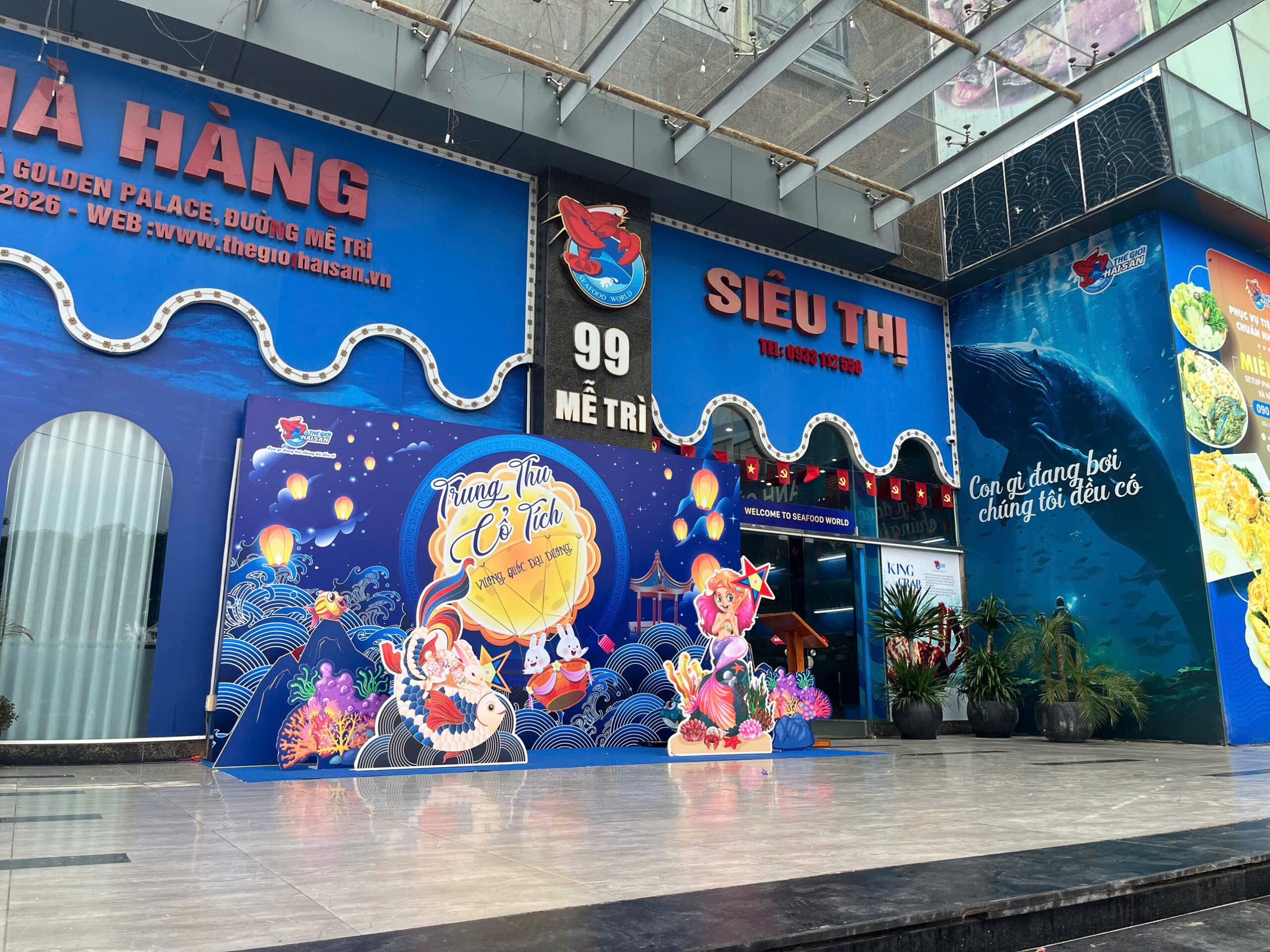 Trung thu không chỉ là dịp sum vầy, mà còn là cơ hội để doanh nghiệp tạo nên dấu ấn thương hiệu trong lòng khách hàng. Tháng 9-2025, Shaka Group hân hạnh đồng hành cùng chuỗi Nhà hàng Thế Giới Hải Sản Hà Nội (99 Mễ Trì, 36 Điện Biên Phủ, 75A Trần Hưng Đạo) trong dự án Backdrop & Photo booth Trung thu với chủ đề độc đáo: “Trung thu cổ tích - Vương quốc Đại dương”.