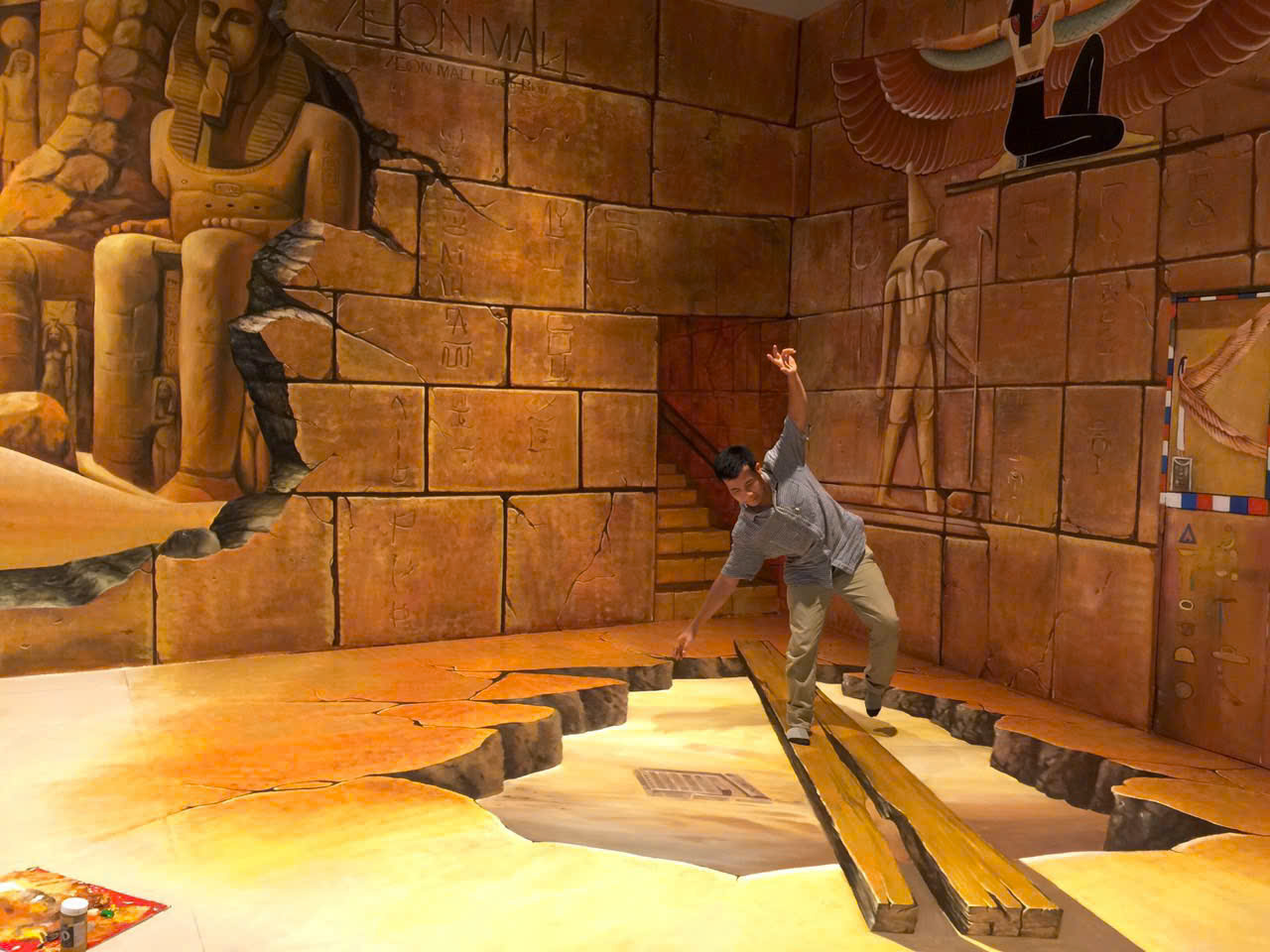 Bước chân vào khu vực được Shaka Group thực hiện, người xem lập tức được “dẫn dắt” qua nhiều thế giới khác nhau: từ đại dương xanh thẳm với cá voi, rùa biển, bạch tuộc khổng lồ..., đến vùng đất Ai Cập huyền bí với tượng nhân sư, kim tự tháp và sắc vàng của sa mạc cổ đại.
