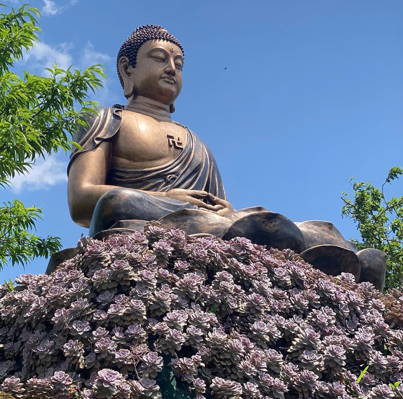 Tượng Phật được tạo hình theo phong cách nghệ thuật Phật giáo thời Trần (thế kỷ XIII) – giai đoạn rực rỡ trong lịch sử văn hóa dân tộc. Với dáng ngồi thanh thoát, gương mặt hiền từ, ánh mắt từ bi, tượng gợi nhớ hình ảnh bậc giác ngộ luôn lắng nghe và che chở chúng sinh. Từng đường nét uy nghi mà vẫn gần gũi, lan tỏa cảm giác an yên giữa đất trời mênh mông.