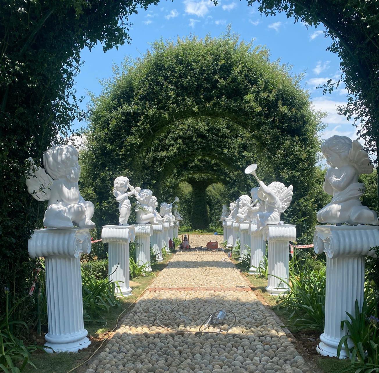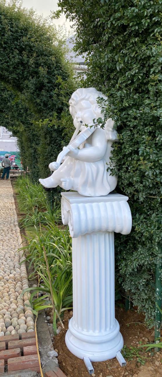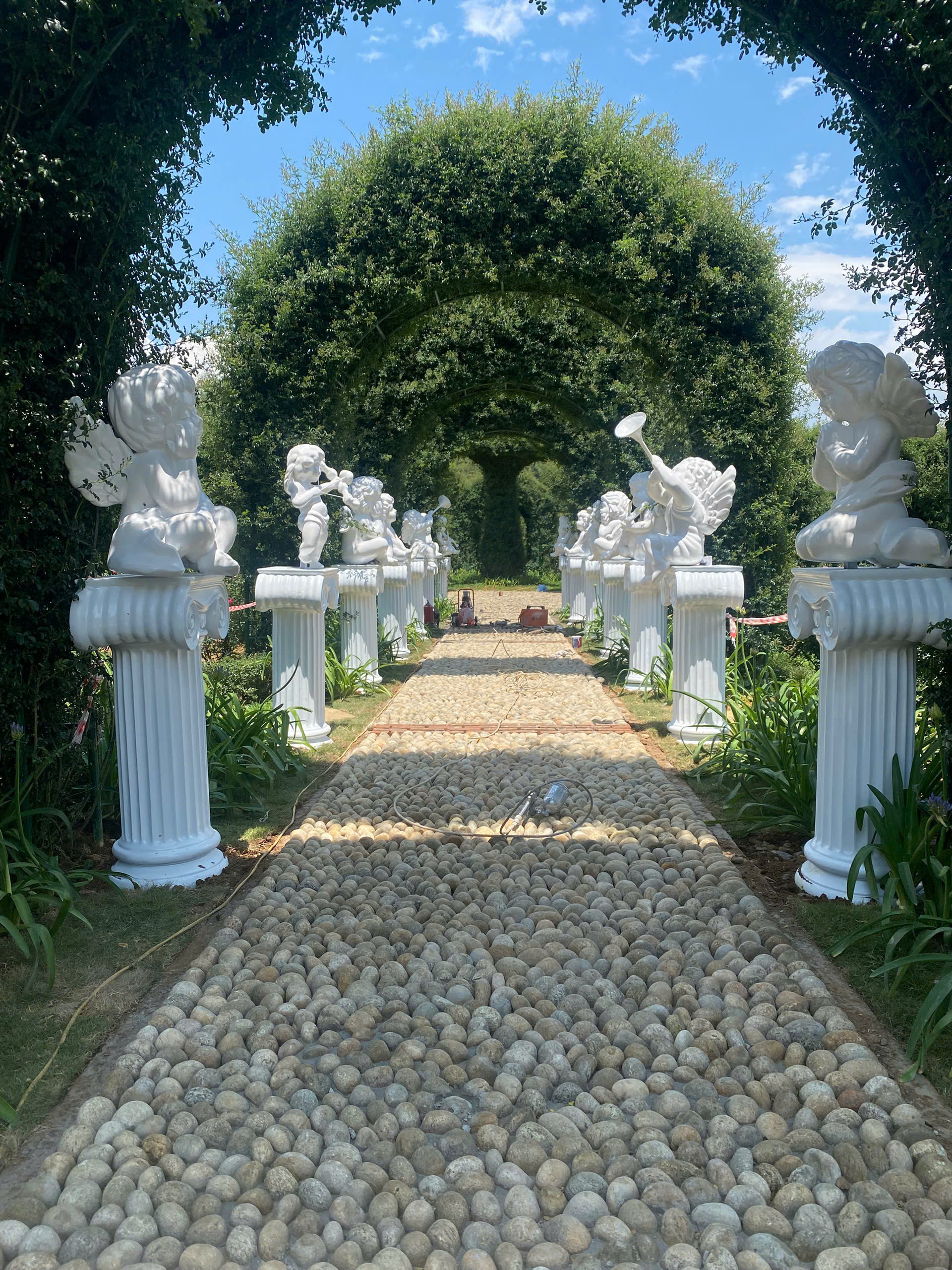 Trong khu vườn ngập tràn sắc xanh, hàng tượng thiên thần trắng tinh khôi hiện lên như những nốt nhạc trong bản hòa ca thiên nhiên. Từng chi tiết, từ ánh mắt, nụ cười, đến đôi cánh thiên thần đều được các nghệ nhân, họa sĩ điêu khắc Shaka Group chăm chút tỉ mỉ, mang đến cảm giác sống động và tràn đầy cảm xúc.